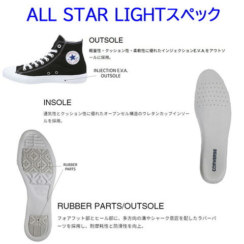 オールスター史上最軽量、インジェクションE.V.A.のアウトソールを搭載した軽量オールスター。