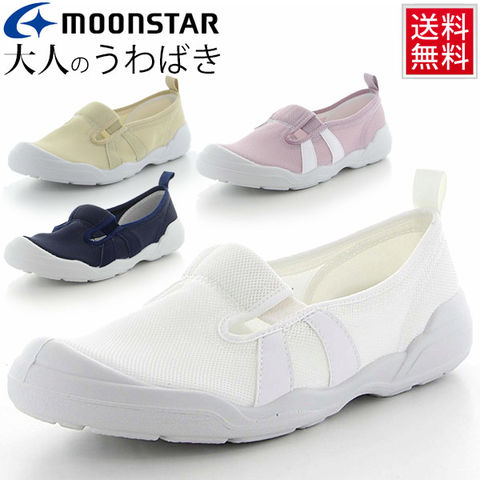 送料無料 室内履き 大人の上履き うわばき シューズ レディース/ムーンスター 月星 大人用 女性 2E幅 軽量 リハビリ 介護 病院 仕事 入院 無地 日本製 くつ クツ 上靴/543690