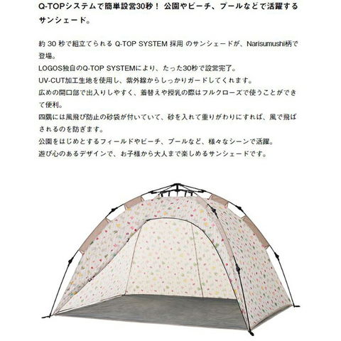 送料無料 ロゴス LOGOS サンシェード Narisumushi(なりすむし)柄 限定生産 UVカット 日よけ テント 簡単組立て アウトドア用品 収納バッグ付 キャンプ ピクニック レジャー ビーチ 公園 防災用品/71205001【ギフト不可】