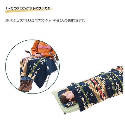 分けたシュラフは2人分のブランケットや枕として使用できます。