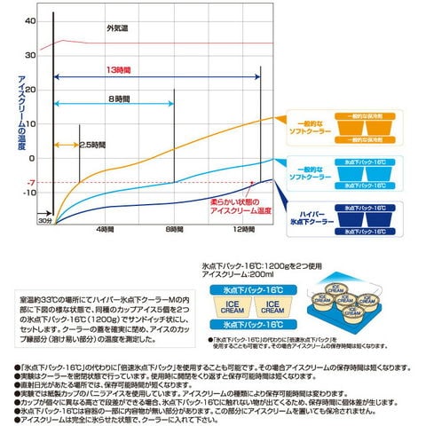 【驚異の保冷力!氷点下パック使用でアイスクリームが約13時間保存可能!】