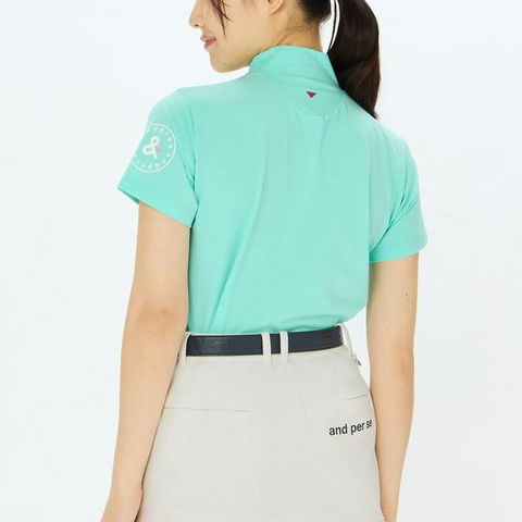 ストレッチ性と吸汗速乾性、UVカット機能を備えたベーシックデザインの半袖モックネックシャツ。