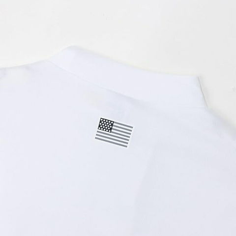 フロントカラーで切り替えた「C」のChampionロゴと衿裏の星条旗グラフィックはラバープリント。