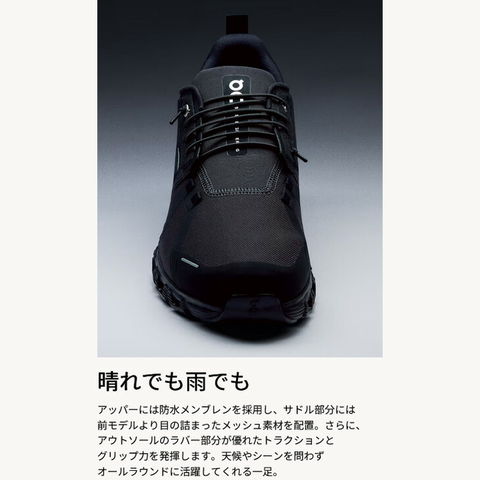 アッパーには防水メンブレンを採用し、サドル部分には前モデルより目の詰まったメッシュ素材を配置。