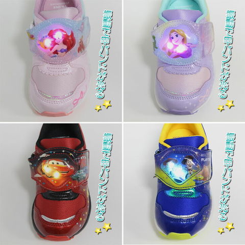 送料無料 ディズニー 光る靴 LED キッズシューズ 14-19cm 2E 子供靴 Disney アリエル ベル ラプンツェル プリンセス カーズ トイストーリー キャラクター 男の子 女の子 スニーカー 運動靴 カジュアルシューズ ブランド ムーンスター/DN-C1358LE