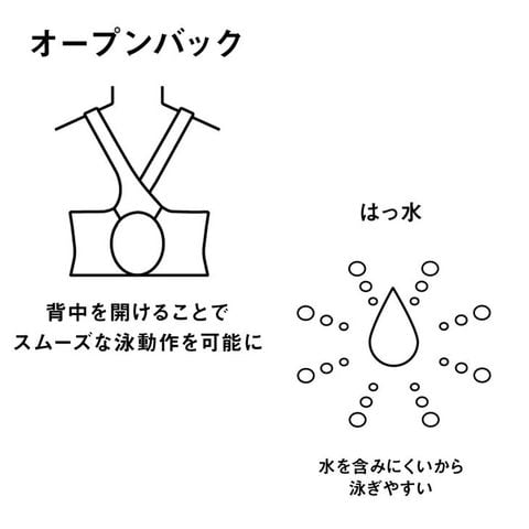 安心感のある地厚な生地で塩素に強く長持ちし、はっ水加工でシャープな水切れが特徴です。
