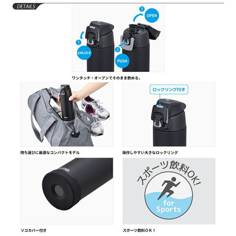 ワンタッチ・オープンでそのまま飲める。スポーツ飲料もOK!