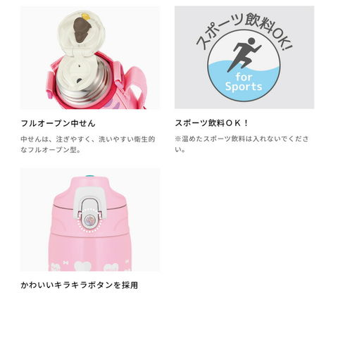 直接飲める保冷専用スポーツボトル、コップと中せんを付けて、