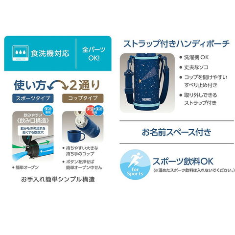 送料無料 サーモス 水筒 800ml 保温 保冷 THERMOS 真空断熱2ウェイボトル コップ付きボトル ステンレスボトル スポーツボトル スポーツ飲料OK ワンタッチオープン ポーチ付き 食洗機対応 子供用水筒 ブランド すいとう/FJJ-802WF