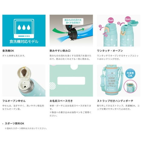 ボトル本体も洗えます。(全パーツ食洗機対応)