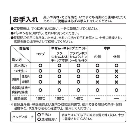 取り外しできるストラップ。洗濯機OK。 コップを開けやすいすべり止め付き。