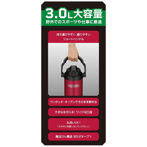 送料無料 サーモス 水筒 3L 3000ml THERMOS 真空断熱 スポーツジャグ 保冷 スポーツ飲料OK 丸洗いOK 大容量 2.5リットル ハンドル付 部活 試合 アウトドア レジャー/FJQ-3000【2023C】のレビュー