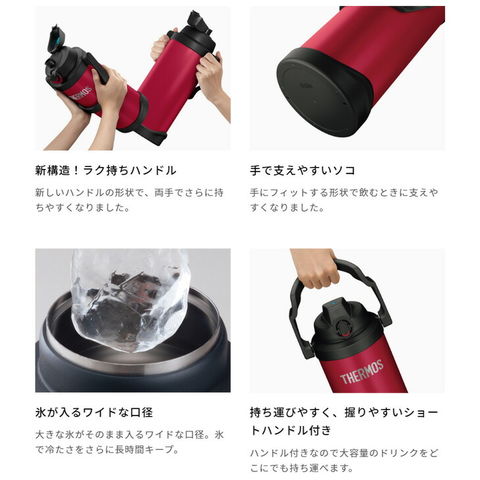 大容量のスポーツジャグは、真空断熱構造だから長時間のスポーツシーンでも冷たさキープ。