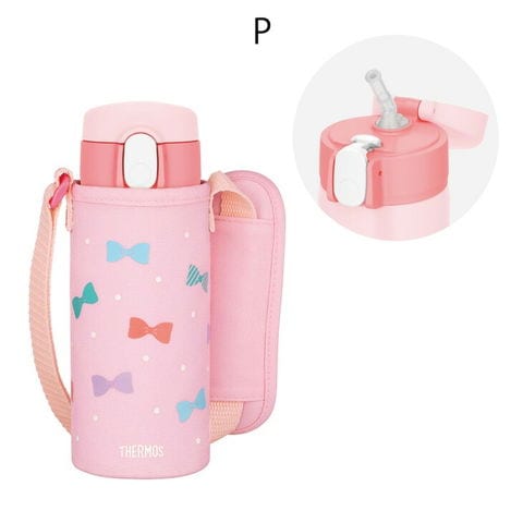 サーモス 水筒 400ml 保冷専用 THERMOS 真空断熱ストローボトル 0.41L ステンレスボトル 魔法びん構造 ワンタッチオープン ポーチ付き 食洗機対応 子供用水筒 キッズ マグボトル マイボトル りぼん柄 自動車柄 子ども こども 学校 遠足 ブランド すいとう/FJV-400F