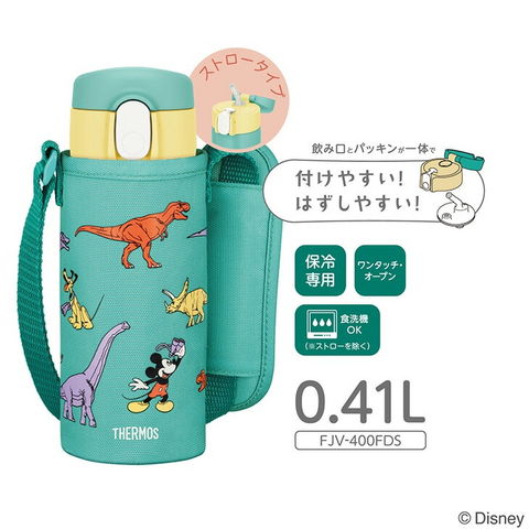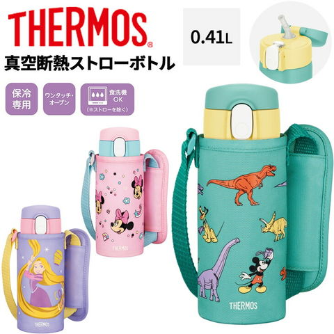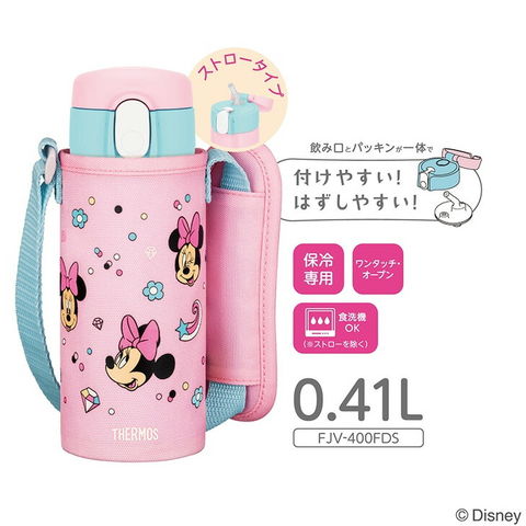 送料無料 サーモス 水筒 400ml 保冷専用 THERMOS 真空断熱ストローボトル 0.41L Disney ディズニー キャラクター ステンレスボトル 魔法びん構造 ワンタッチオープン ポーチ付き 食洗機対応 子供用水筒 マグボトル マイボトル 子ども こども ブランド /FJV-400FDS
