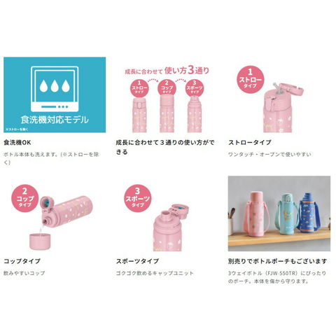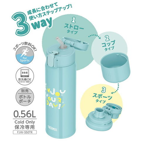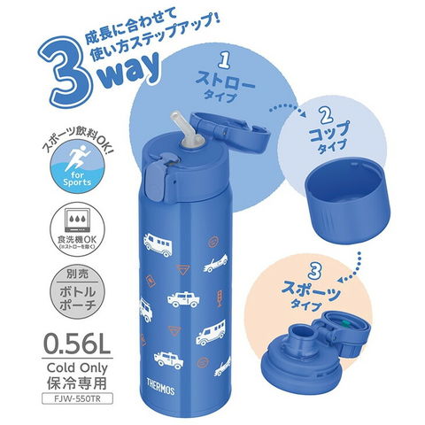 送料無料 サーモス 水筒 560ml 0.56L 保冷専用 THERMOS 真空断熱3ウェイボトル 子供用水筒 ストロー コップ スポーツタイプ 3way仕様 食洗機対応 ワンタッチオープン 子ども こども 大人 ユニセックス ブランド すいとう/FJW-550TR