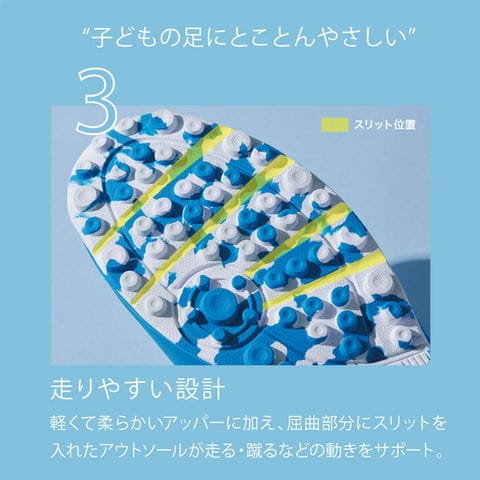 アウトソールが走る・蹴るなどの動きをサポート。