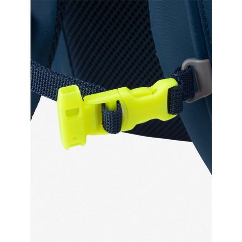 チェストストラップには荷重が加わると外れるセーフティバックル(ホイッスル付き)を採用し、