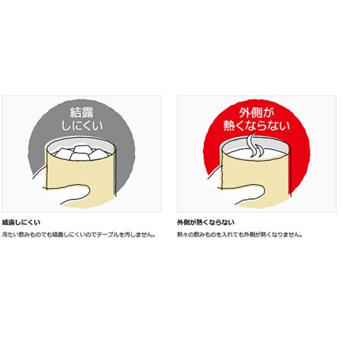 冷たい飲みものでも結露しにくいのでテーブルを汚しません。