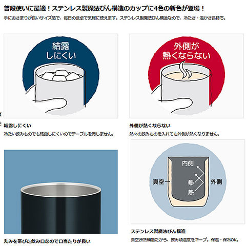 普段使いに最適!ステンレス製魔法びん構造のカップに4色の新色が登場!