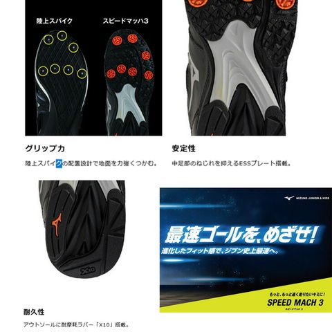ミズノ(Mizuno)から、ジュニアシューズ「スピードマッハ3」です。