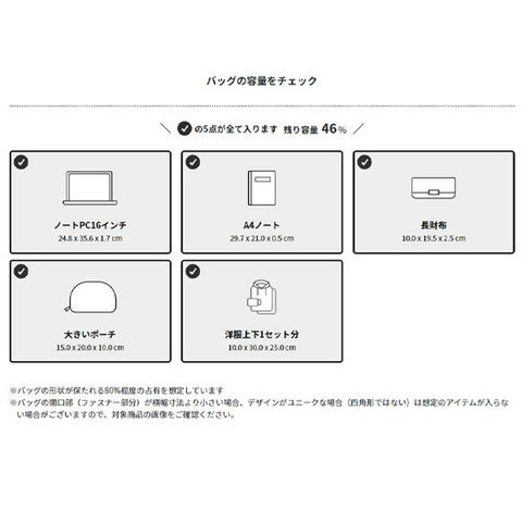 止水ファスナーを装備。収納物を迷うことなく整理することが可能です。