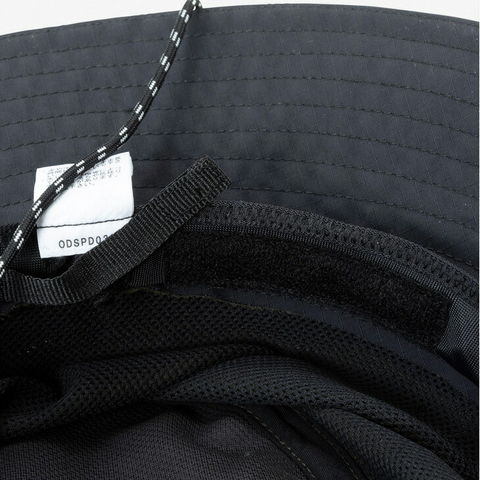日除けに有効な長めのつばは、裏側が黒色でまぶしさを低減。