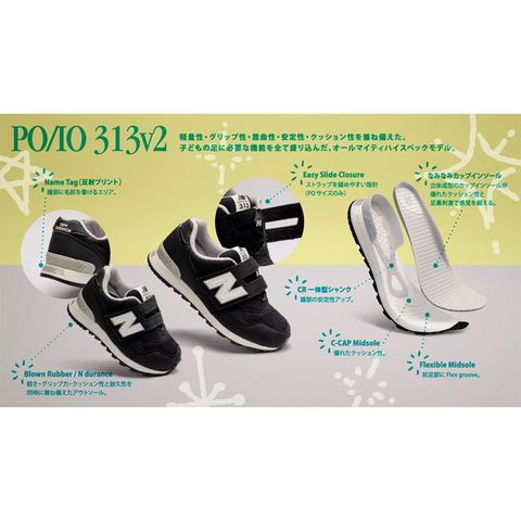 送料無料 ニューバランス キッズ スニーカー 17-21.5cm 子供靴 Newbalance PO313 ジュニアシューズ カジュアルシューズ 子ども スポーツ スポーティ ベルトタイプ マジックテープ 男の子 女の子 小学生 園児 幼児 ブランド 運動靴 くつ/PO313-JJ2