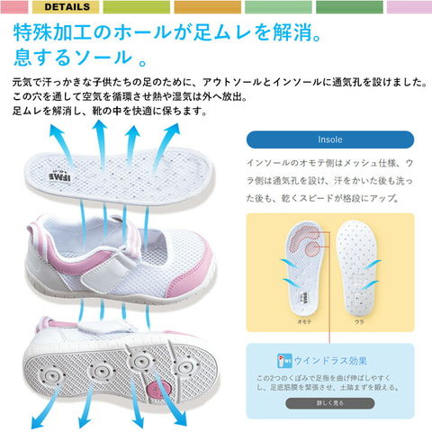 ムレを防ぐ「息するソール」、通気性のよいダブルラッセルのメッシュ使い
