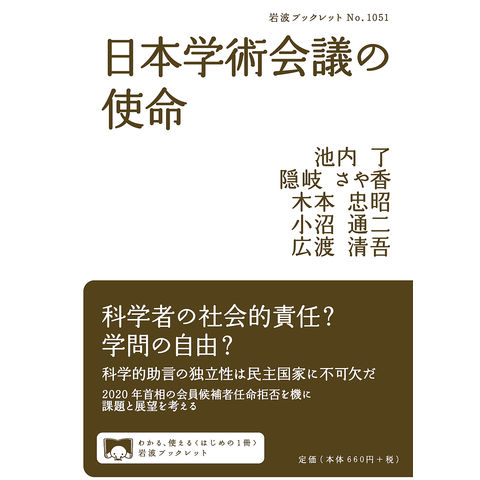 「学者の国会」ともいわれる日本学術会議。戦時体制への反省から設置されたが、そもそもどんな存在か。2020年、首相による会員候補者6人の任命拒否という前代未聞の事態が発生。これを機に、法的・歴史的にとらえ直し、科学者の社会的責任、学問の自由の問題から課題や展望を考える。前史来100年あまりの略年表付き。