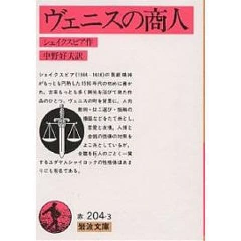 シェイクスピア(1564‐1616)の喜劇精神がもっとも円熟した1590年代の初めに書かれ、古来もっとも多く脚光を浴びて来た作品のひとつ。ヴェニスの町を背景に、人肉裁判・はこ選び・指輪の挿話などをたて糸とし、恋愛と友情、人情と金銭の価値の対照をよこ糸としているが、全篇を巨人のごとく一貫するユダヤ人シャイロックの性格像はあまりにも有名である。