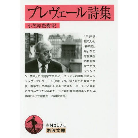 「天井桟敷の人々」「霧の波止場」など恋愛映画の名脚本家であり、シャンソン「枯葉」の作詞家でもある、フランスの国民的詩人ジャック・プレヴェール(1900‐77)。恋人たちの歓喜と悲哀、戦争や日々の暮らしのありさまを、ユーモアと諷刺につつんでうたいあげた、ことばの魔術師のエッセンス。