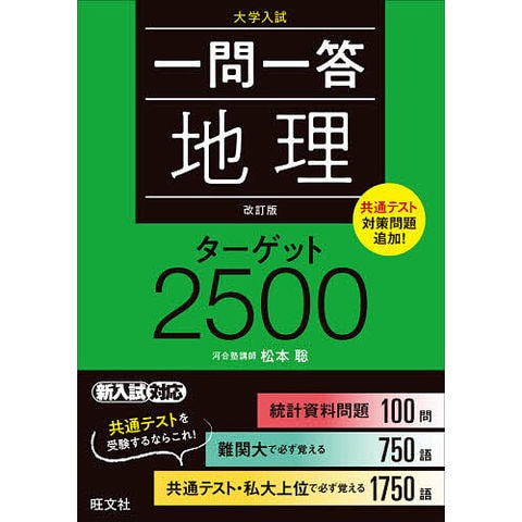 過去約15年分の大学入試問題を徹底分析したことで誕生した、約2、500語の用語を収録した一問一答型地理問題集です。“共通テスト・私大上位で必ず覚える”入試基礎レベル1、750語、“難関大で必ず覚える”上位私大レベル750語という2段階レベルで構成しています。両方のレベルで“地図の利用”・“系統地理”・“地誌”の全範囲を扱っています。最初のレベルだけでも教科書復習レベル基本問題の全範囲を扱っています。2つ目のレベルも含めて学習することで、地理で必要な用語を効率的に覚えられます。