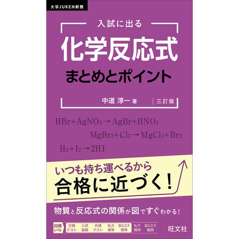 覚えなければいけない、覚えておくと入試で役に立つ化学反応式を整理した本で、いわば化学反応式事典です。