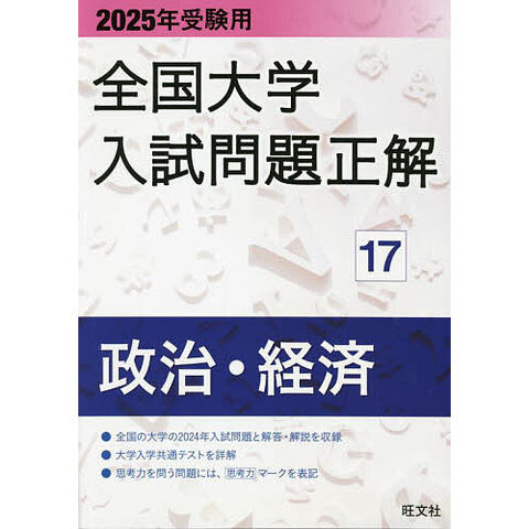 2024年に実施された全国のおもな国公立大学と大学入学共通テストの政治・経済の問題を収録し、研究と解答を詳細に掲載しています。また、「2024年大学入学試験の出題傾向と2025年の受験対策」「内容別問題一覧」も収録しています。大学受験対策書としてだけでなく入試資料としても高い評価を得ています。