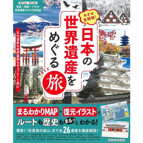 日本にある世界遺産全26件(2024年時点)を旅するための一冊。人類の宝、日本の「世界遺産」を美しい写真や、わかりやすいイラストなどで紹介。実際に旅したときに役立つマップなどを駆使して徹底解説する。周辺の歩き方ガイドや絶景写真なども併せて掲載。誰もが、世界遺産を一度は訪ねてみたくなること間違いなし。【構成】●遺産を象徴する絶景を見開き写真で紹介。●この書籍の一番の売り、遺産の歩き方を詳解する「めざせ!遺産全踏破」では、それぞれの世界遺産を構成する建造物や自然遺産なども、ときにはイラストや地図なども交えて紹介する。●さらに遺産の価値や特色を詳細に図解した、見開きページで展開するイラスト「見てわかる!」も見どころのひとつ。