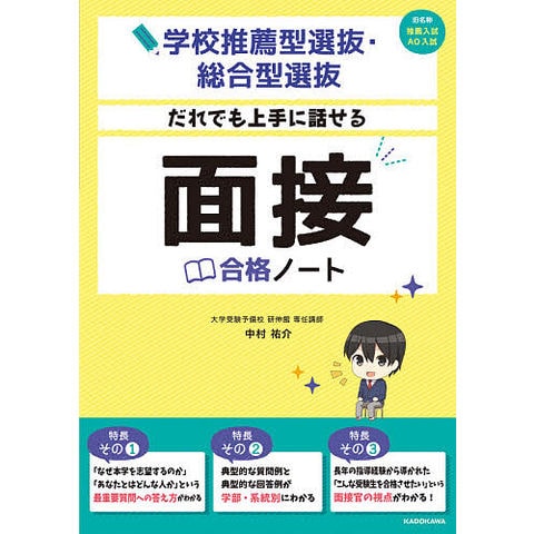 学校推薦型選抜・総合型選抜「面接」対策に必要なことをすべて掲載。受験生の「合格回答」を通じて、面接時に最も重要な「志望理由」「自分の人柄」についてスラスラ説明できる話し方が身につく。先生キャラ、生徒キャラの掛け合いで楽しく読め、回答例は自分で書き込めるつくり。学校推薦型選抜・総合型選抜指導の第一人者・中村祐介先生が、約20年間にわたる指導で確立し、実績を上げてきたノウハウを一挙公開。「面接官の視点」から書かれた実践的な参考書。学校推薦型選抜・総合型選抜「面接」対策の新バイブルがここに誕生。