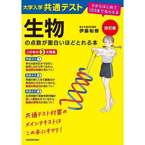 この本は、小社より2021年7月に刊行された『大学入学共通テスト 生物の点数が面白いほどとれる本』に、最新の学習指導要領と出題傾向に準じた加筆・修正を施し、令和7年度以降の大学入学共通テストに対応させた改訂版です。 2004年の刊行から合格した400万人の先輩が大絶賛した【実績No.1の参考書】シリーズが、共通テストの最新傾向に完全対応して更にパワーアップしました。 志望校が決まれば、次はこの本で対策を始めましょう! 高得点を狙うならこの本1冊で十分です! 知識問題に対応するためには、教科書内容の知識を押さえるためにも本文を熟読しましょう。そして、それぞれのしくみをきちんと理解しましょう。 また、共通テストで出題される思考力や応用力が問われる問題にも対応するため、これまでの共通テストを徹底的に分析し「スペシャル講義」を設けましたので活用してください。 このチェック問題を何度も繰り返して基礎力を磨き、本番で実力が発揮できるよう頑張りましょう。