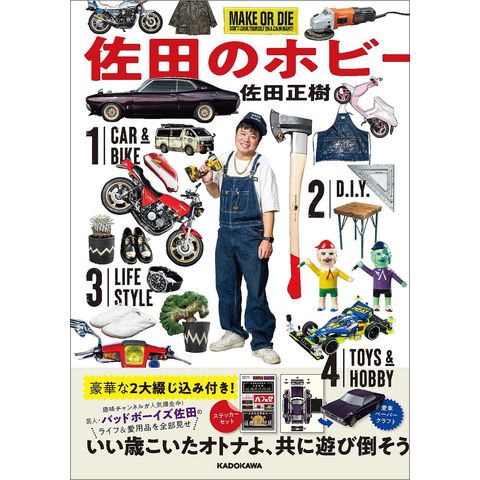 さらに本書には、人気ステッカーデザインを詰め合わせた「ステッカーセット」と、佐田の愛車を再現した「愛車ペーパークラフト」(約1/38スケール)という、この本だけの豪華な2大綴じ込み特典付き!(※単行本のみの特典となります。電子書籍には付属いたしません)