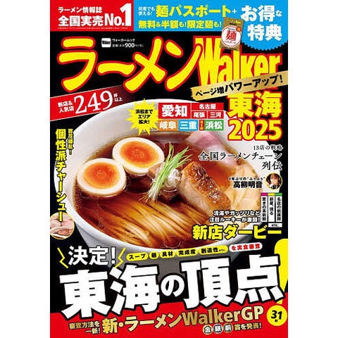 東海地方の本当においしいラーメン店を厳選紹介する「ラーメンWalker東海」の2025最新版は、静岡県浜松市までエリアを広げてパワーアップ!