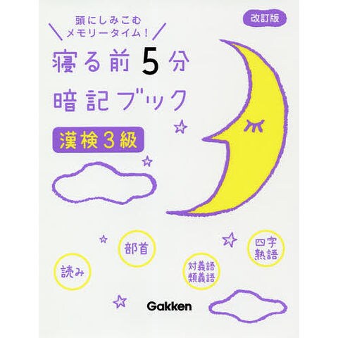 「寝る前の暗記が記憶定着を促す」というメソッドをもとに、漢検3級の漢字と、注意すべき読みや部首、熟語など重要なポイントをゴロ合わせとイラストでまとめた参考書。配当漢字一覧表、赤フィルターつき。2020年からの新しい配当漢字に対応した改訂版。