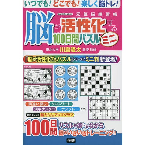 脳トレの第一人者、東北大学の川島隆太教授・監修のロングセラー「脳が活性化するパズル」シリーズにミニ判が新登場。掲載パズルは従来シリーズと同じ。脳の活性化に効果があることが実験を通じてわかった人気のパズル、クロスワード、ナンプレ、間違い探し、漢字ナンクロ等を100問収録。持ち運びやすいコンパクトなサイズでありながら、見やすさにこだわった紙面作りだから、いつでもどこでも楽しみながら脳のトレーニングに取り組むことができます。