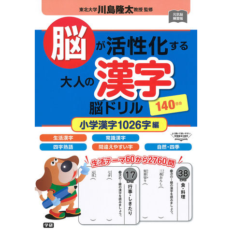 川島隆太教授が監修。脳の活性化させる漢字の書き取り問題を140日分掲載。小学漢字1026字の基礎漢字で楽しく脳トレ。1章 生活漢字、2章 常識漢字、3章 自然・四季・風景、4章 四字熟語、5章 間違いやすい字・特別な読み方。