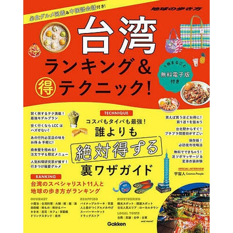 台湾通のスペシャリストと地球の歩き方が選ぶグルメやおみやげ、見どころの「最新ランキング」と、誰よりも賢くお得に旅する「マル得テクニック」を一挙紹介。小籠包から麺・ご飯・夜市にスイーツ&ドリンク、パイナップルケーキやコスメまで、数あるなかから本当におすすめできるモノ&お店だけを厳選しました。また、出発準備、観光、グルメ、ショッピング、ビューティ、エンタメ、ホテル、トラブル対策などのテーマ別に、ガイドブックには掲載できなかった、知らないとソンする裏ワザを徹底伝授します。台北はもちろん、人気地方都市の最新情報も要チェック。台湾でもっと楽しく、お得に旅したい人に必携の1冊です!【スマホやタブレットで使える便利な電子書籍付き!】
