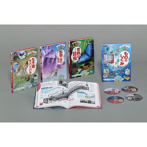 理科の生き物関連の学習はもとより、自由研究の題材を調べたり、子どもの知的好奇心にも応える最新図鑑の4巻セット。BBC(英国放送協会)などの制作によるDVDのほか、スマホをかざせば動画やAR(飛び出す3D)が見られる。