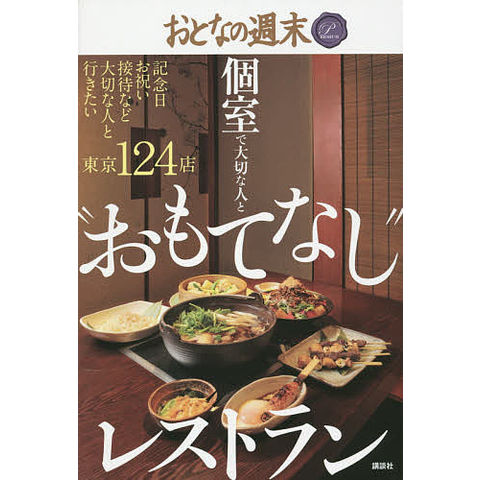 美味しいグルメ店情報を読者に伝え続けてきた月刊誌「おとなの週末」。おとなの求める(旨い)のツボを、どこよりも知っている編集部がお届けする、おとなが使える極上店の「おもてなし」レストランガイド。読者世代が飲食店を使うときに必要とされる、いろいろなシチュエーションに合わせて「個室」がある店を紹介する。同僚や部下と使いたい「優秀な部下を連れて行く」編。接待使用に最適な「仕事が成功するために」編。妻や家族の会食におすすめの「愛する人を喜ばせる」編。老舗での特別な会を催すための「大切な人をお祝いする」編。おとなの隠れ家として通いたい「誰にも見つからない店」編の5章構成。おとなが必要とするさまざまな状況で使える、ちょっとグレードの高い情報がつまっているプレミアムガイド。これ一冊あれば、(さすがのレストラン選び)ができること確実です。