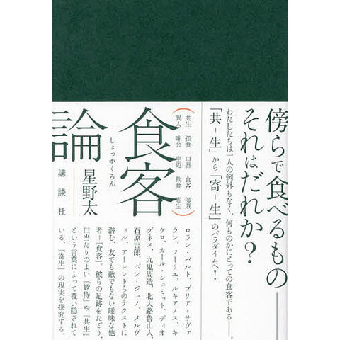 ロラン・バルト、ブリア=サヴァラン、フーリエ、ルキアノス、キケロ、カール・シュミット、ディオゲネス、九鬼周造、北大路魯山人、石原吉郎、ポン・ジュノ、メルヴィル、アーレントらのテクストに潜む、友でも敵でもない曖昧な他者=「食客」。彼らの足跡をたどり、口当たりのよい「歓待」や「共生」という言葉によって覆い隠されている、「寄生」の現実を探究する。