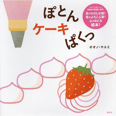 2017 年にイタリア・ボローニャ国際絵本原画展に入選し、書籍の装画、広告、テキスタイルなど、様々な媒体で活躍中のオオノ・マユミさんによる、日本初の幼児絵本。クリームが「ぽとん」「ぴゅーう」「くるっ」「にゅ」と、デコレーションされ、おいしそうなケーキがリズミカルにできあがります。のびやかな線と、擬音語・擬態語の音のマッチングが楽しいおしゃれな一冊。