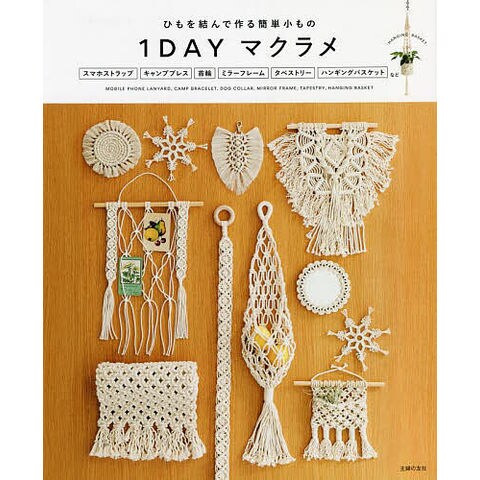 1日で作れる、マクラメ手芸の初心者向け作品集。中でも、ひも1本を結べば作れるアイテムは超初心者でもあっという間に完成! 作品は、斜めがけスマホストラップ、アウトドア用ブレスレット、犬の首輪とリード。そのほかハンギングバスケット、タペストリー、ミラーフレーム、ヨガマットホルダー、カーテンタッセル、ベルト、フォトフレーム、チャームなど定番&人気アイテムを紹介。マクラメは人気のBOHOやナチュラルスタイルのインテリアや着こなしに必須! やさしい風合いに心やすらぎます。また、引張強度にすぐれたアウトドアコードで作るブレスレットは、キャンプのみならず災害時にも役立ちます。●デザインは人気インスタグラマーのマクラメのアヤさん、Uriさんほか。●基本の結び方とポイントはプロセス写真で解説。●材料は創業100年のマクラメのパイオニア、メルヘンアート社の製品を使用