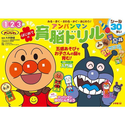 遊びの楽しさこそ一番の育脳!幼児向けドリルの決定版第3弾!発達脳科学の権威、大井静雄先生監修。この「はじめての アンパンマン育脳ドリル」は、お子さんの健やかな脳の発達の第1ステップとなる、五感あそびを特集。お子さんが大好きなアンパンマンたちといっしょに「見る」「聞く」「さわる」「かぐ」「あじわう」の五感を使った楽しい遊び体験できます。もちろん、大人気のシールが30枚。工作ふろくは指先トレーニングに最適の「アンパンマン指人形」です。